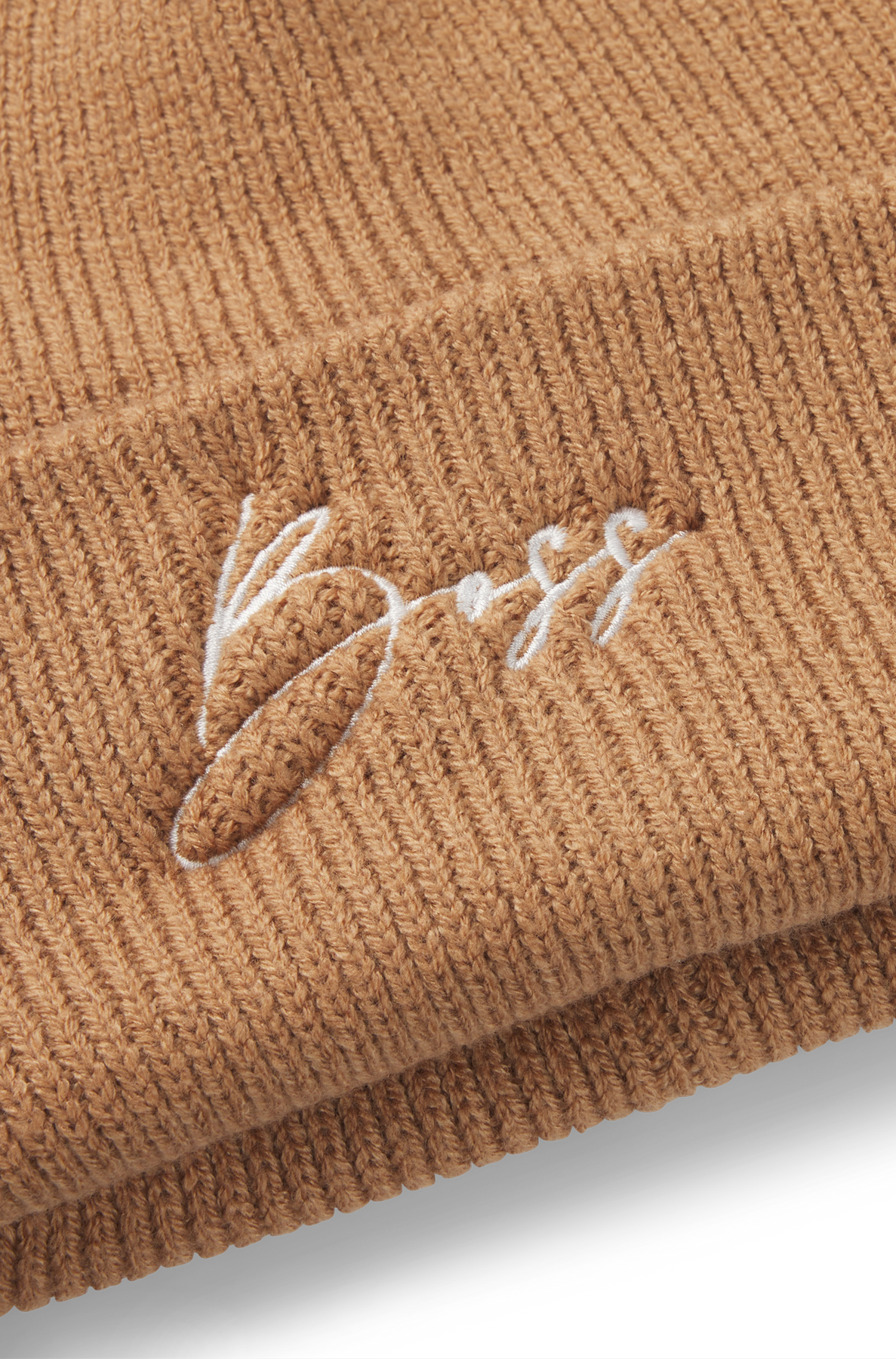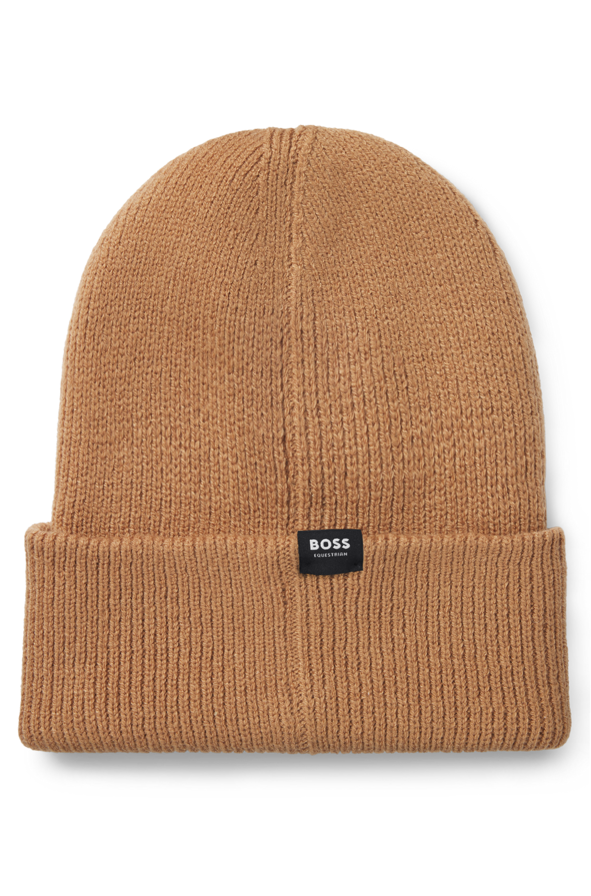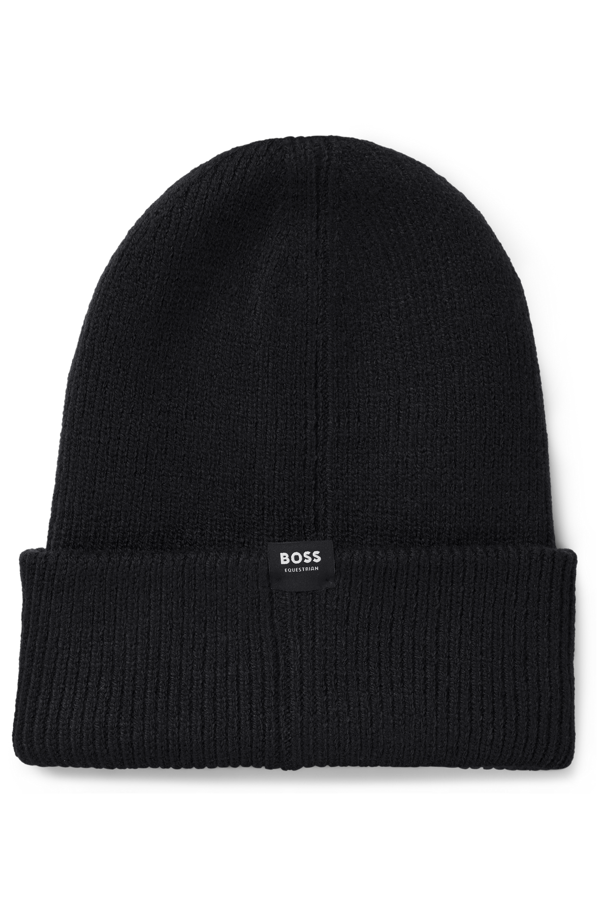 Kuschelige BOSS Mütze. Der Style in Rippenstrick ist aus 100 % recycletem Polyester und hat ein grosser Handschrift Logo aufgestickt.