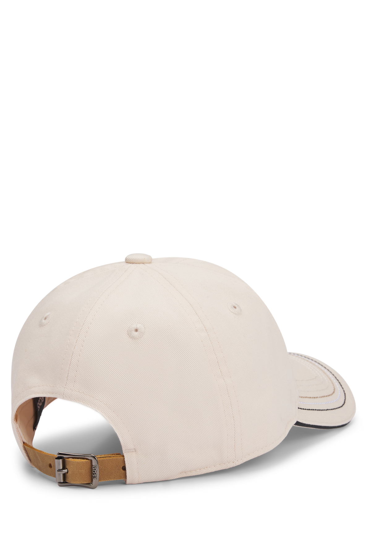 Cap mit sechs Paneelen und lederimitiertem Band mit Schließe zum Verstellen der Weite. Kleine Signature Flagge an der hinteren Seite.