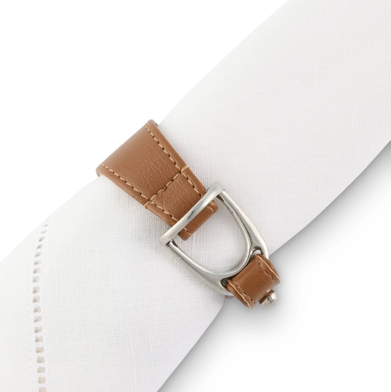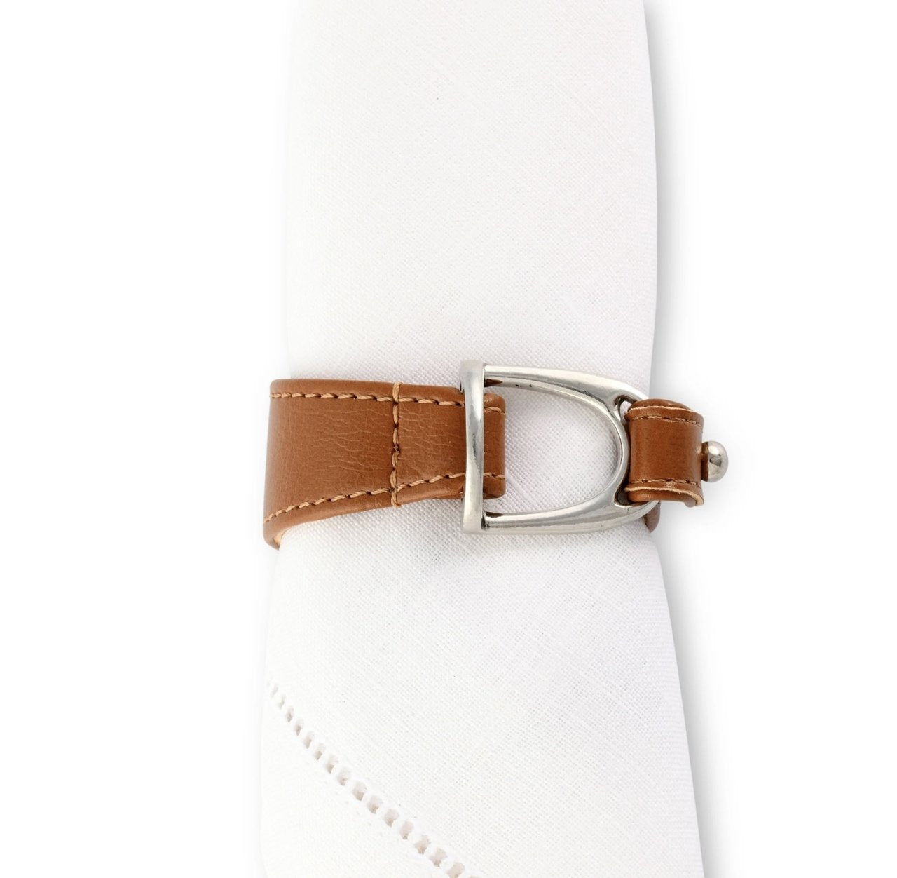Hoch edles Serviettenring Set bestehend aus 6 Stück. Aus Leder gefertigt umschließt der elegante Ring die Serviette und ist mir einem Steigbügel verziert.