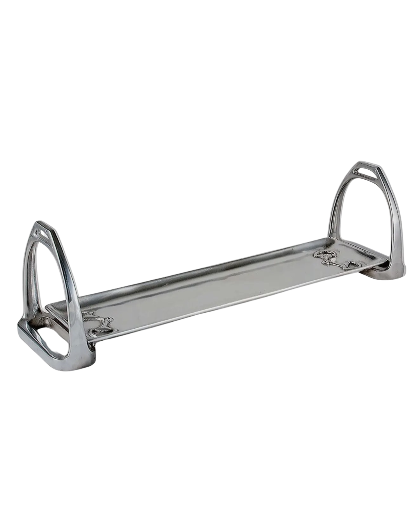 Das Serviertablett Stirrup ist ein stilvolles Wohnaccessoire für Liebhaber des Reitsports. Inspiriert von der klassischen Form eines Steigbügels, kombiniert dieses dekorative Ablage-Element funktionale Vielseitigkeit mit hochwertigem Design.