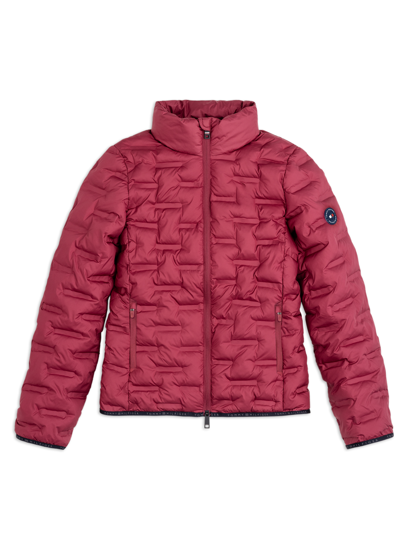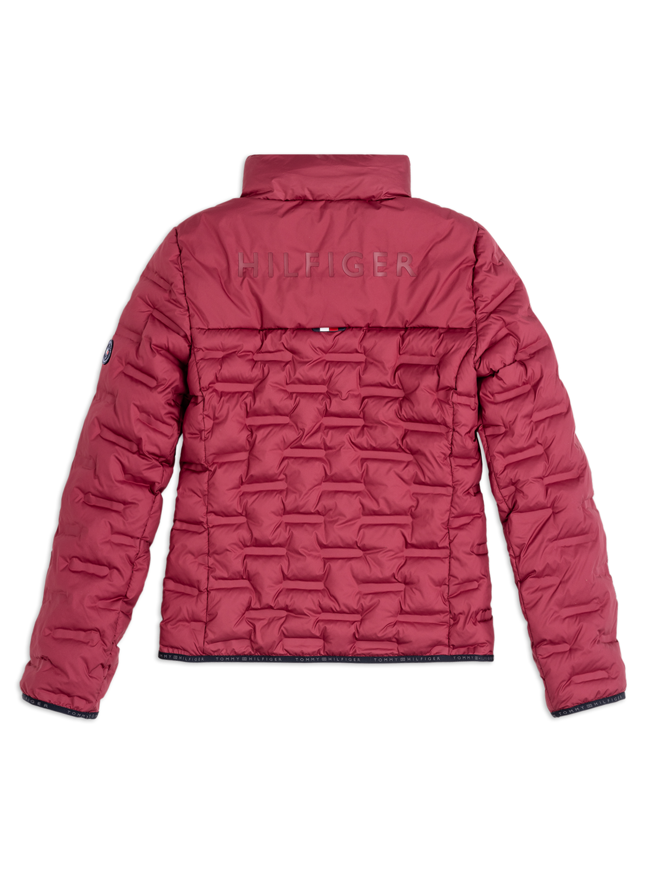 Winter-Pufferjacke mit technischer, nicht abgenähter Steppung, nachhaltiger Faserfüllung und einem all-over Tommy Hilfiger-Branding.