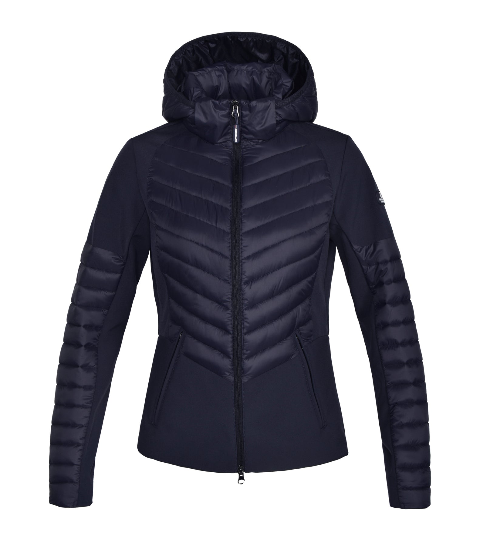 Die elegante Damenjacke Classic Hybrid aus dem Hause Kingsland ist eine isolierte Softshell-Jacke mit Fütterung. Dank der Kombination der Materialien ist die Jacke sportlich und für viele Wetterbedingungen geeignet. Die Jacke überzeugt besonders mit ihrer Funktionalität, zum Beispiel ist die Kapuze für höheren Tragekomfort extra isoliert und durch Druckknöpfe abnehmbar. Die Jacke verfügt über einen Reißverschluss mit 2-Wege-System und glänzendem Metallverschluss, dieser ermöglicht die verschiedensten Trageoptionen, was vor allem bei wechselndem Wetter sehr geschickt ist. Um die weiblichen Körperformen zu betonen, ist diese Jacke tailliert geschnitten und besitzt eine feminine Nahtlinie.