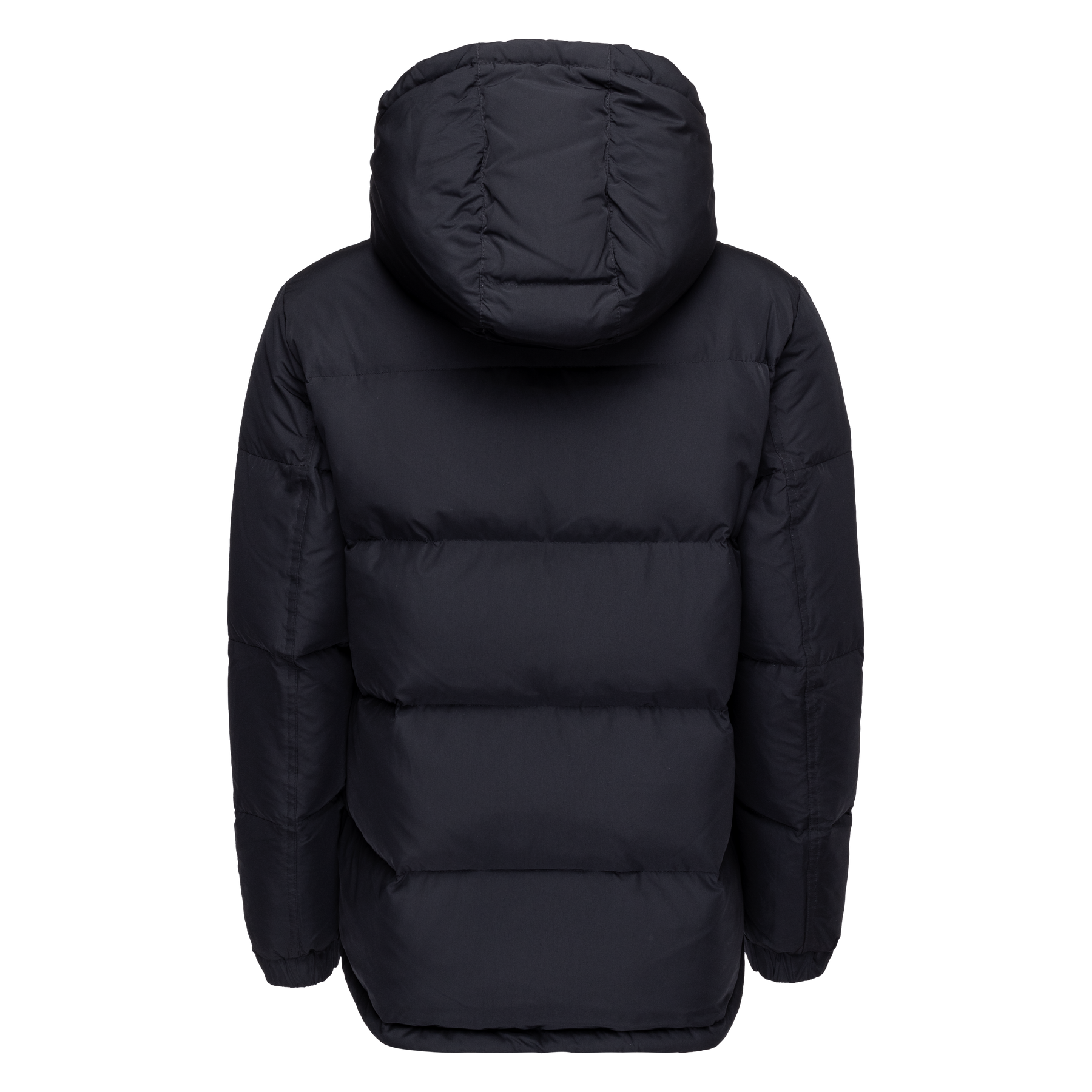 Daunenjacke mit abnehmbarer Kapuze. Wasserabweisend, atmungsaktiv. 2-Wege-Reißverschluss von YKK. Verstellbarer Kordelzug an der Taille. Stickerei im Brustbereich.