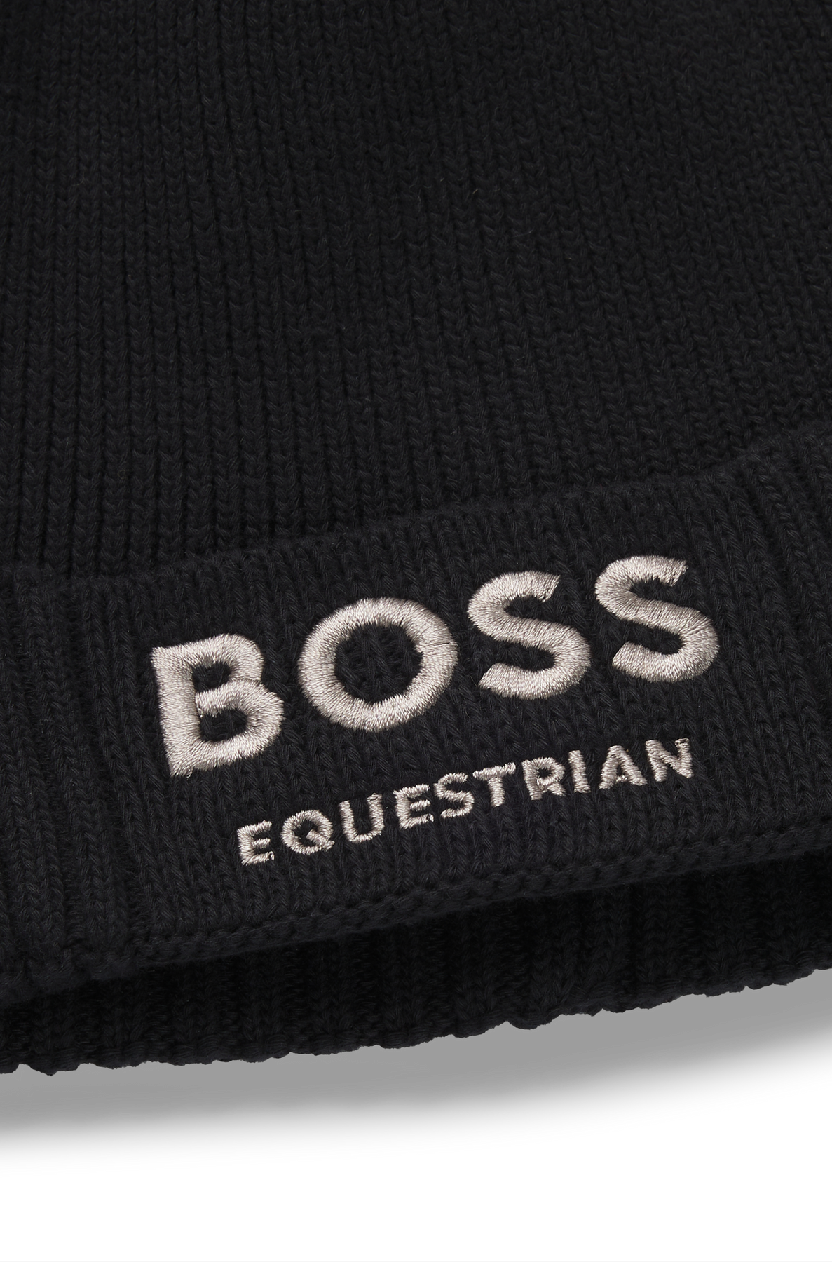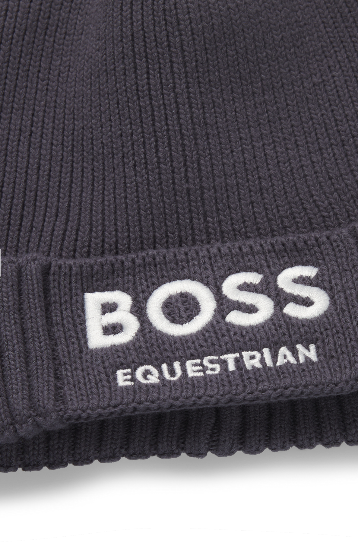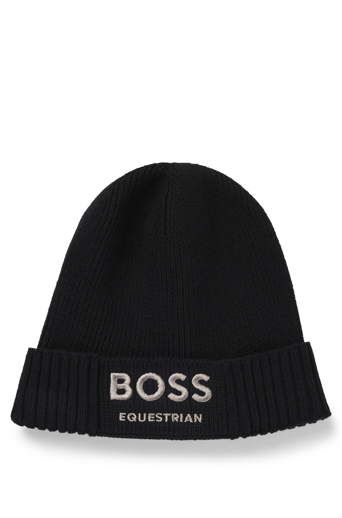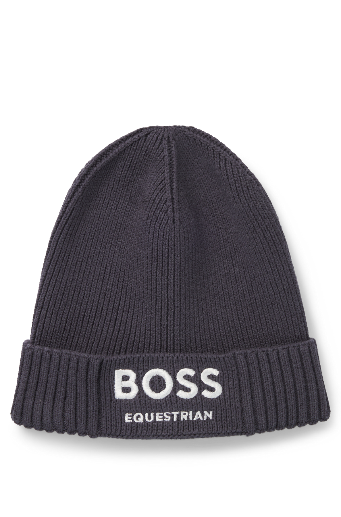 Kuschelige BOSS Mütze. Der Style in Rippenstrick ist aus 100 % recycletem Polyester und hat ein grosser Handschrift Logo aufgestickt.