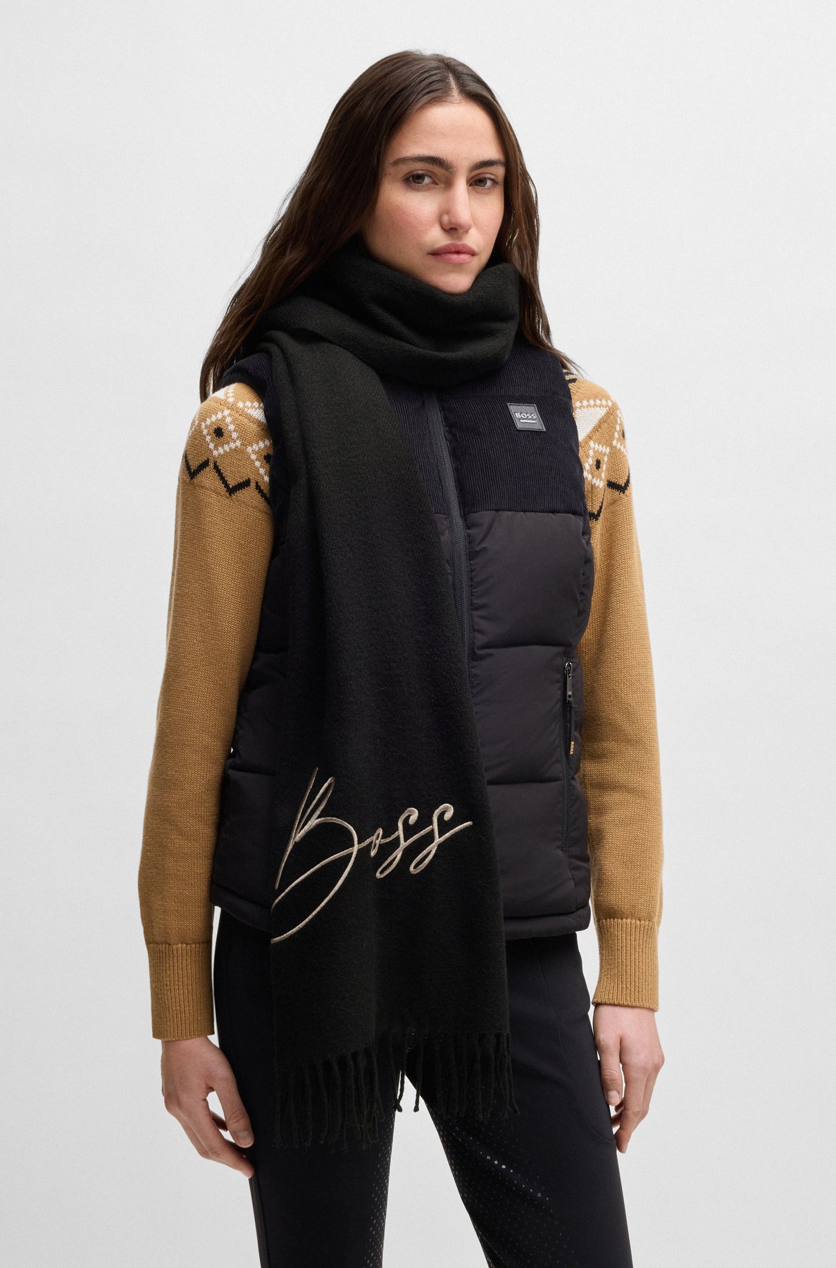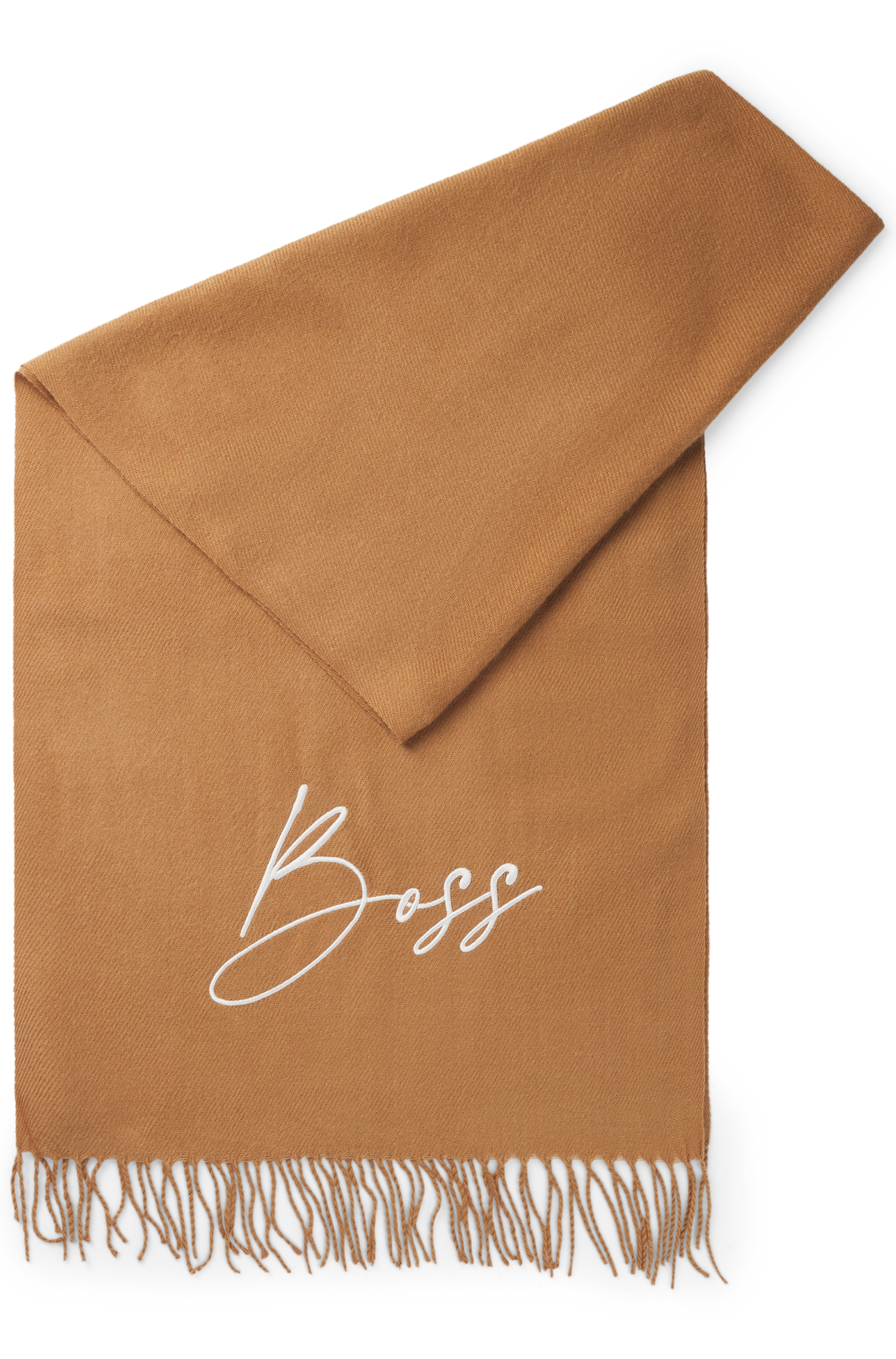 Der kuschelige BOSS Schal ist ein echtes Highlight. Das Accessoire ist aus besonders weichen Garnen mit Fransen gestrickt und trotz der hochwertigen Qualität super leicht. Eine große BOSS Handschrift-Logo-Stickerei rundet das Design ab. Vervollständige deinen Look mit der passenden Mütze.