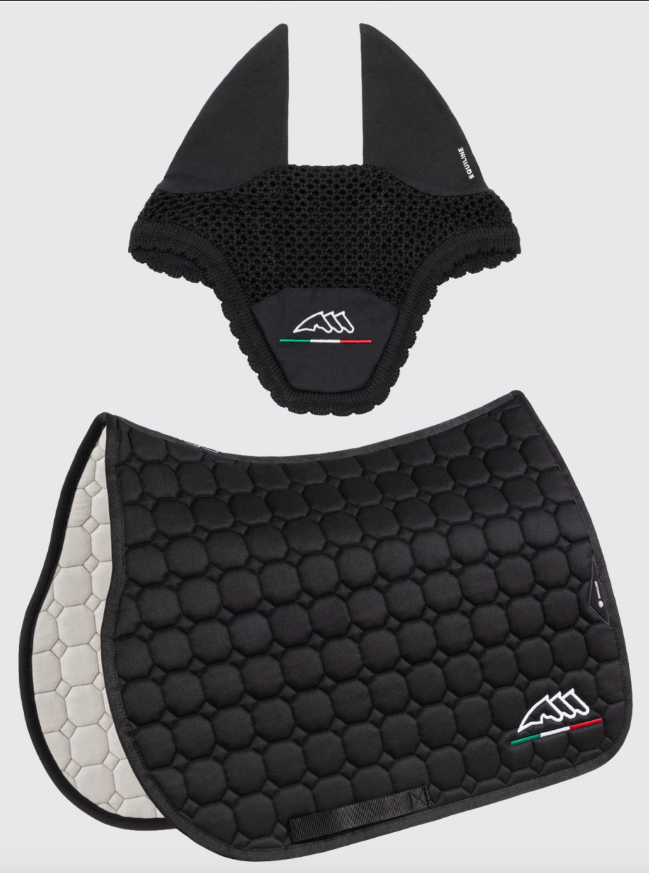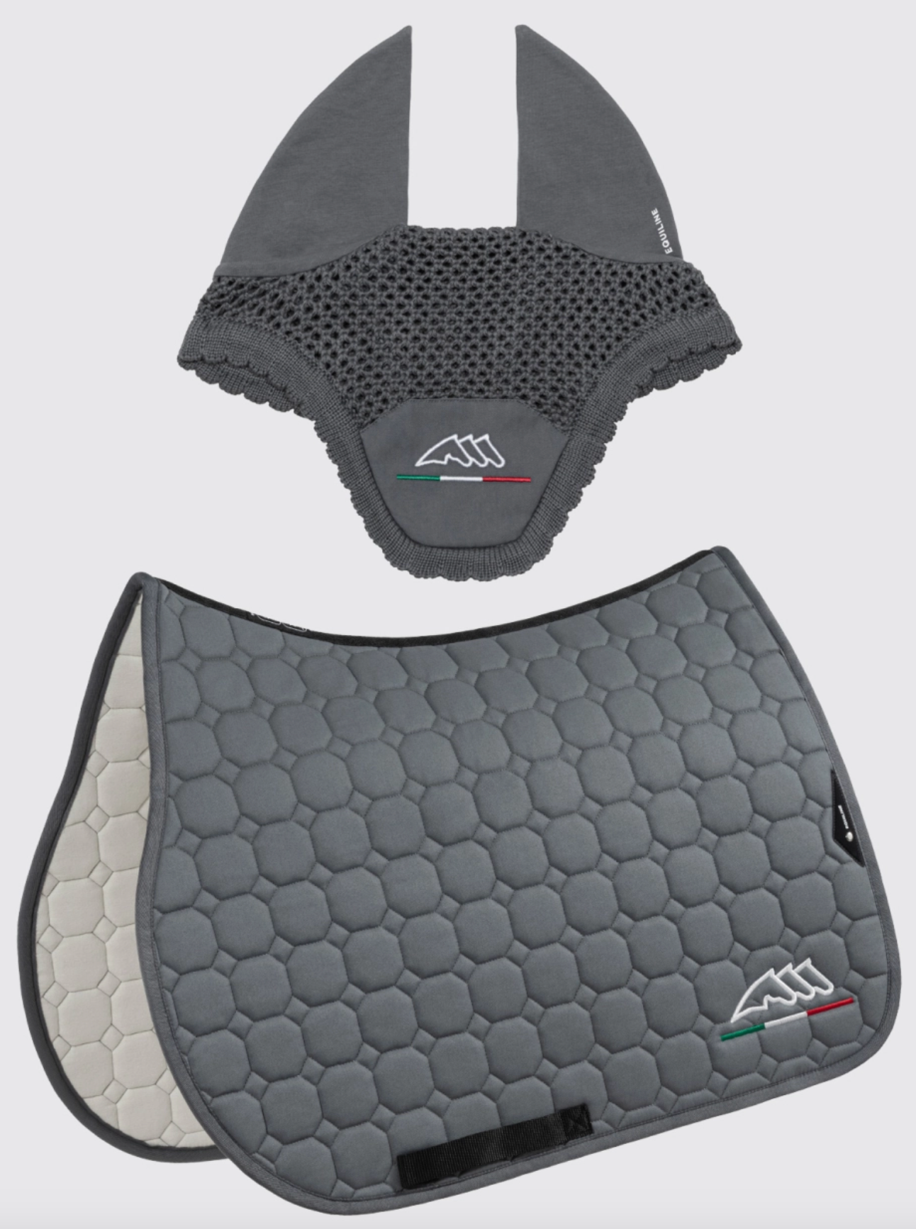 Das Design ist modern und klar, mit stilvollen Akzenten und dezenter Logo-Details, die dem Set eine exklusive Note verleihen. Gleichzeitig sorgt die funktionale Materialauswahl für optimalen Komfort, eine angenehme Passform und zuverlässige Performance – sowohl für Pferd als auch für Reiter.