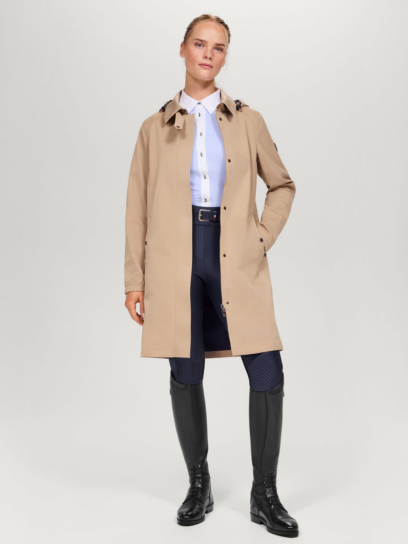 Regen? Kein Problem! Mit unserem wasserdichten technischen Reit-Trenchcoat wird selbst ein Schauer zum Vergnügen.