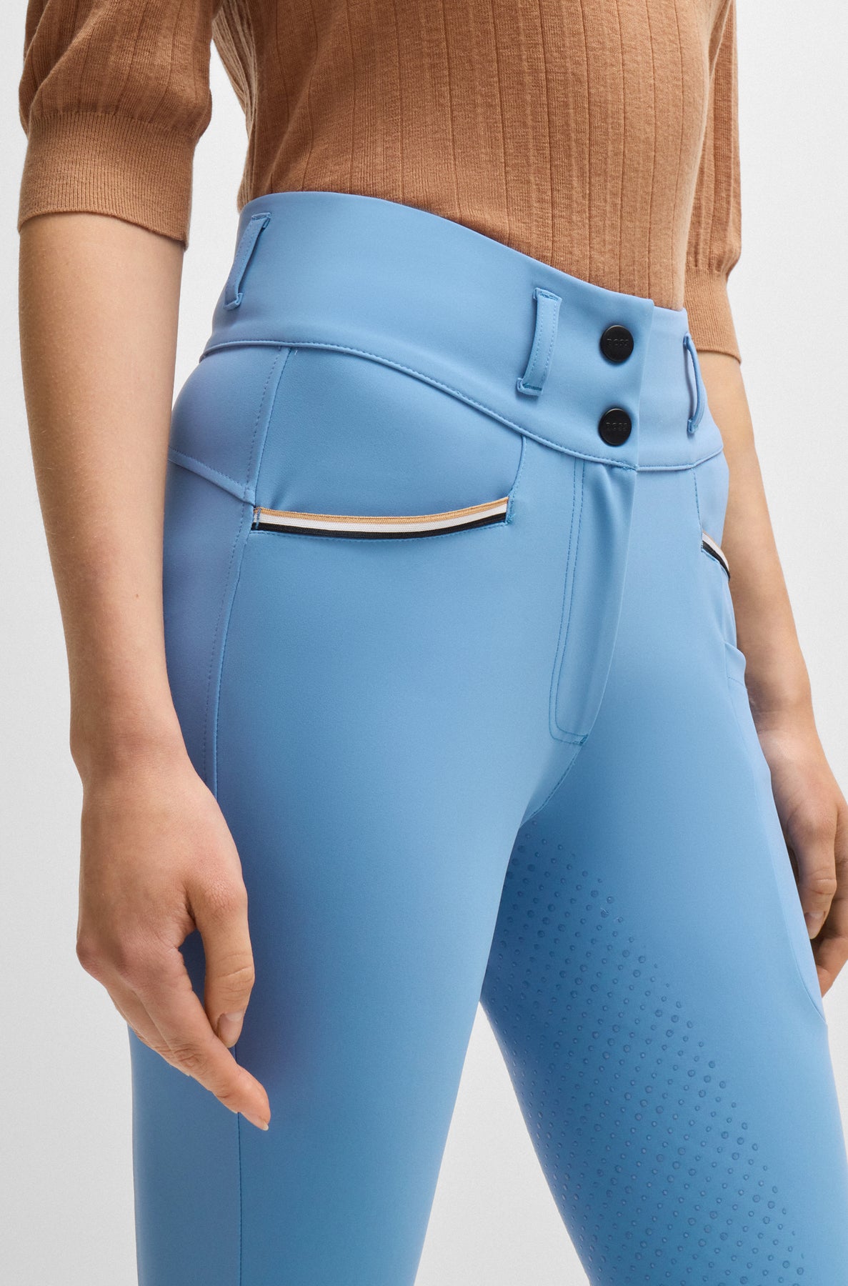 Reithose mit hohem Bund und Vollbesatz.