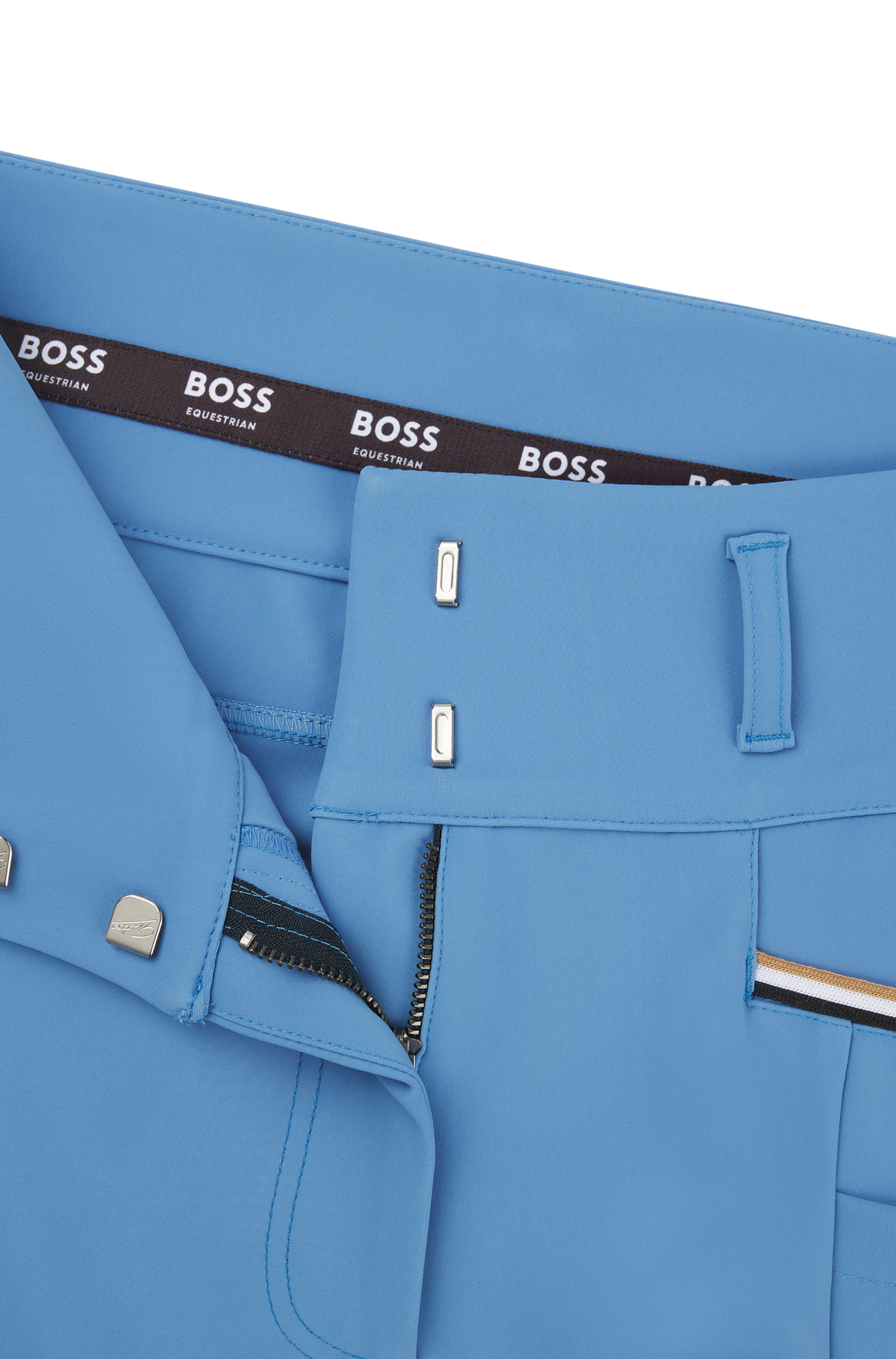 Der Vollbesatz ist organisch verarbeitet, gibt Halt ohne zu kleben. Die Reithose hat einen BOSS Logo Patch auf dem linken Oberschenkel. Der Vollbesatz ist ohne Naht im Vorderbeinbereich gearbeitet, in Power-Sport-Qualität mit höchstem Tragekomfort.