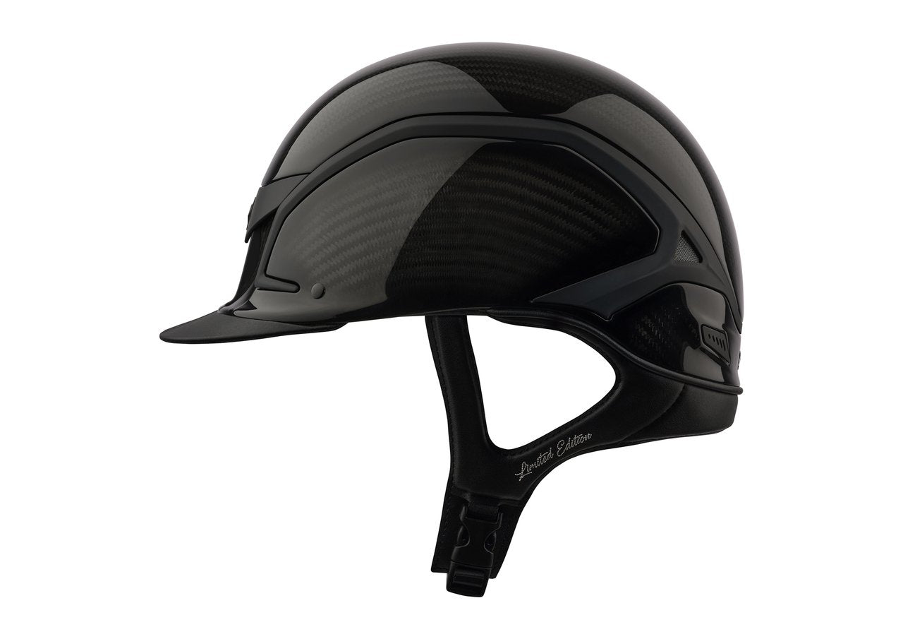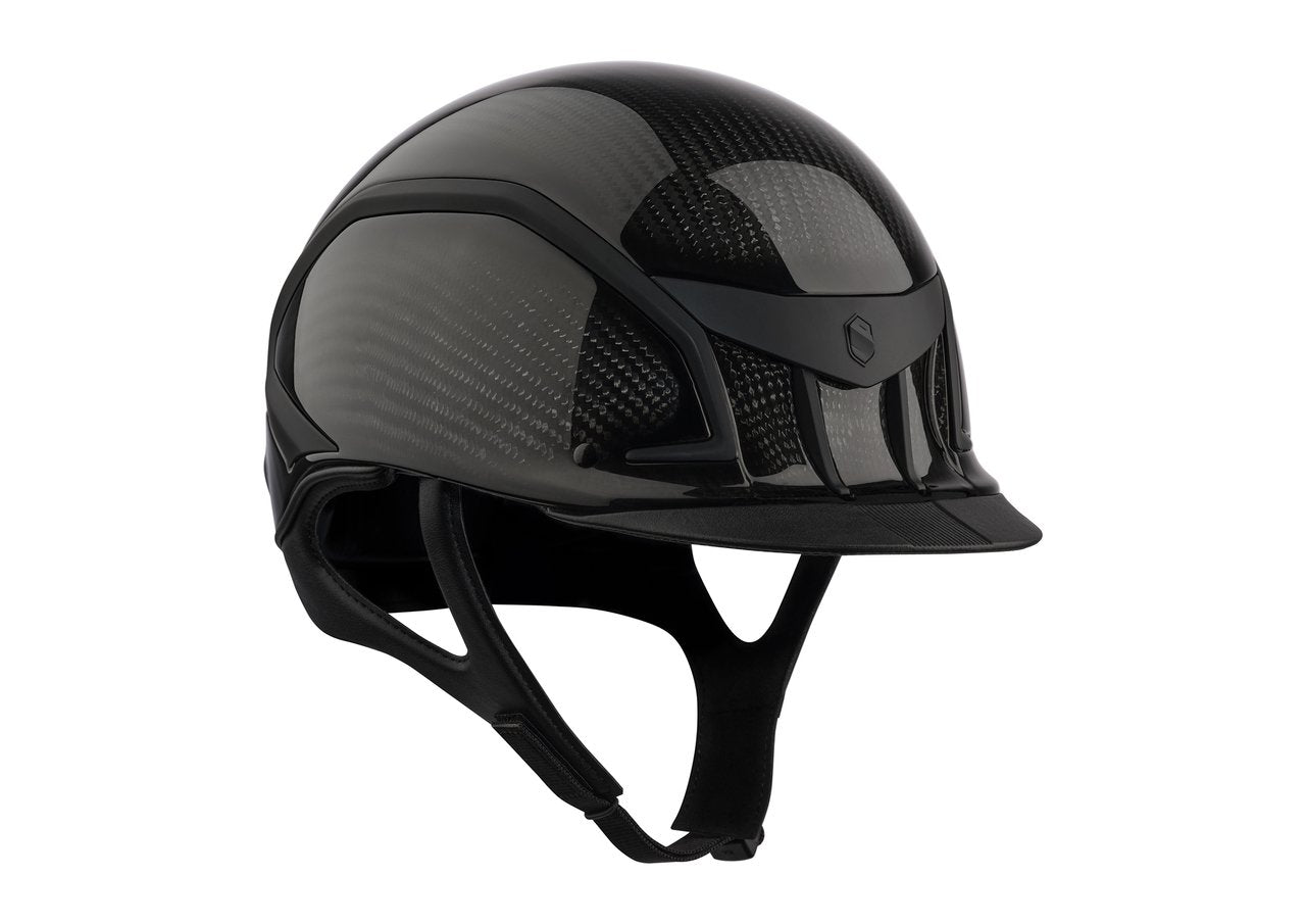 Dieser schöne, sportliche Reithelm von Samshield hat alle Vorzüge des klassischen Carbon Helms, jedoch ist dieser Helm verziert mit matten Details aus der neuen Dark Line, sowie einem glossy oder wahlweise matten Finish der gesamten Carbon Hartschale.