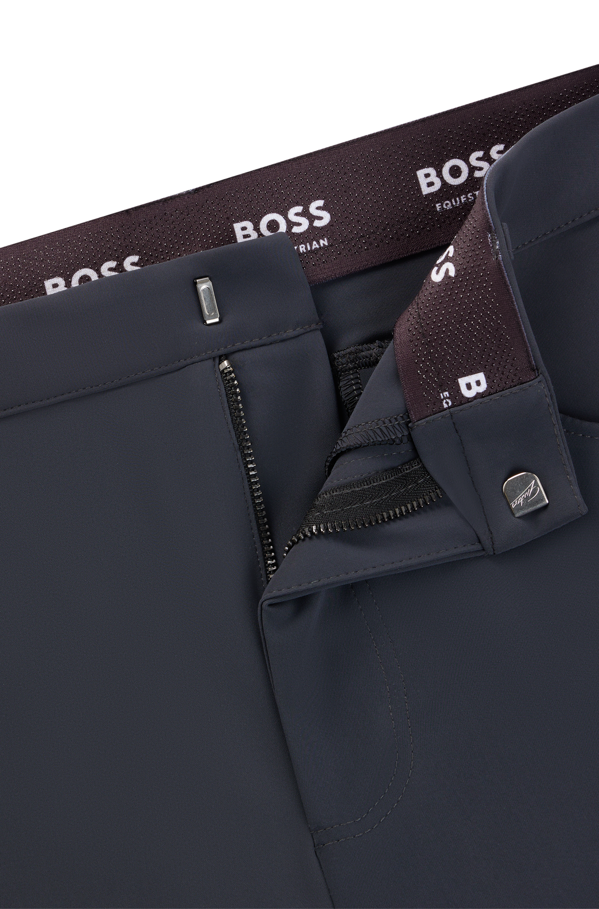The JIM FULL GRIP BREECHES GRANITE features a regular waist fit with a BOSS logo patch on the left leg. It offers excellent freedom of movement with an optimal fit and soft ergonomic full seat.