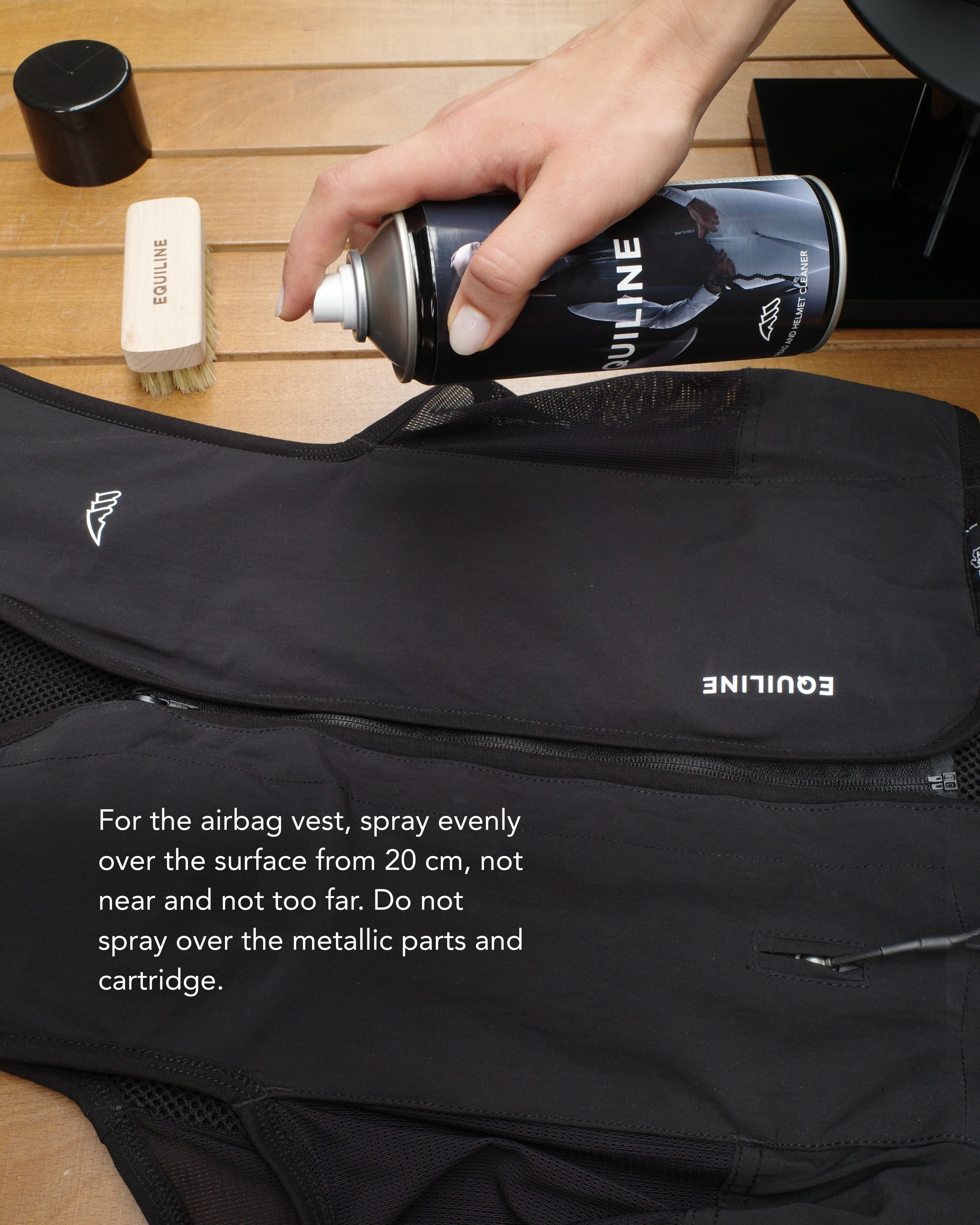 Ideal für die regelmäßige Wartung von Equiline-Helmen und Airbags, es garantiert Hygiene und Pflege, ohne die Integrität der Materialien zu beeinträchtigen.